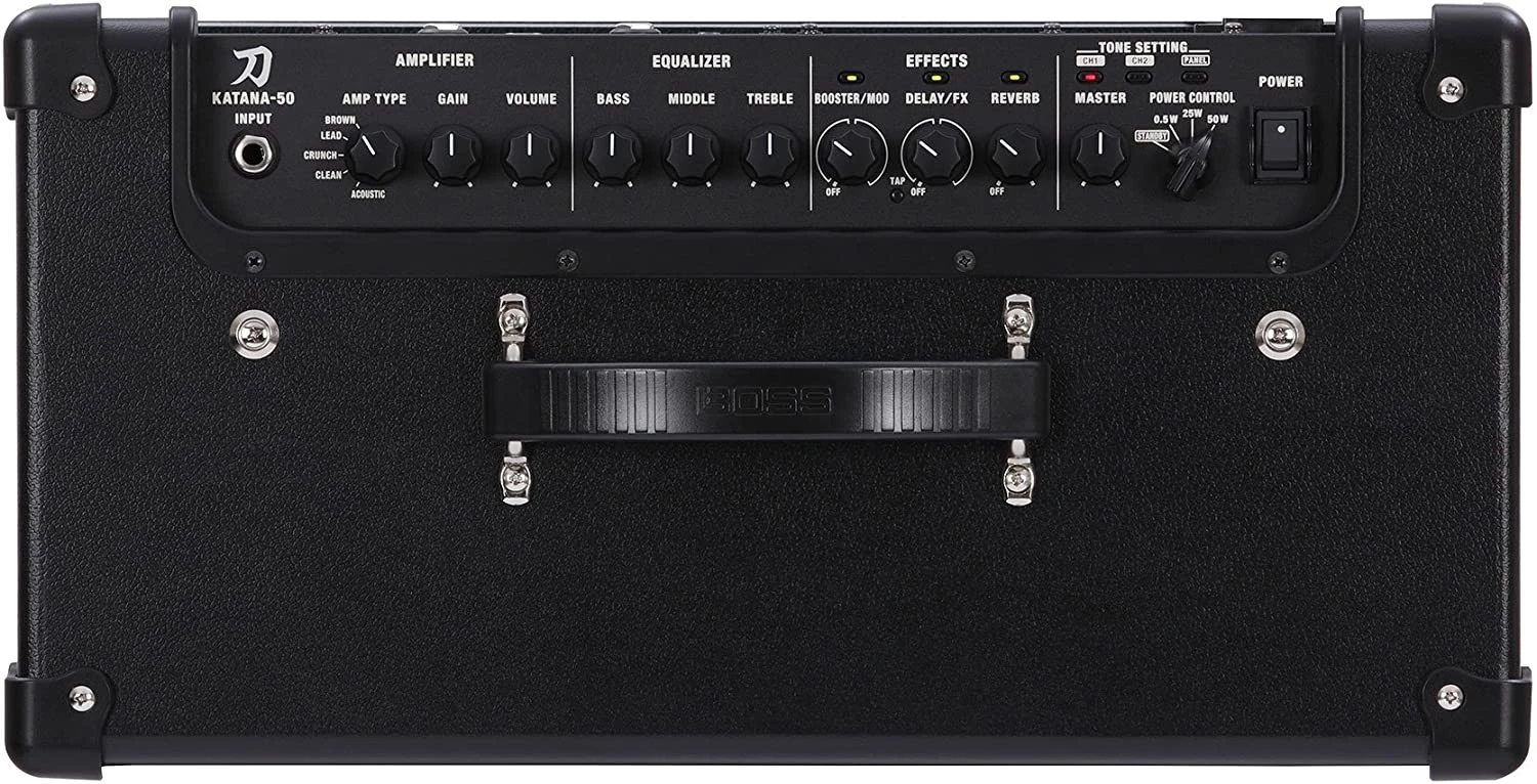 With 50 watts of power and a custom 12-inch speaker, the Katana-50 delivers a commanding range of gig-worthy tones that gracefully slice through any band scenario. The amp also excels for home playing, with a uniquely efficient design and innovative Power Control that provides inspiring sound and response at low volumes. In addition, the Katana-50 includes integrated access to a huge range of BOSS effects, which are customizable using the free BOSS Tone Studio editor software. And with the amp’s powerful Tone Setting memories, you can store your favorite amp channel setups and effects combinations for instant recall.