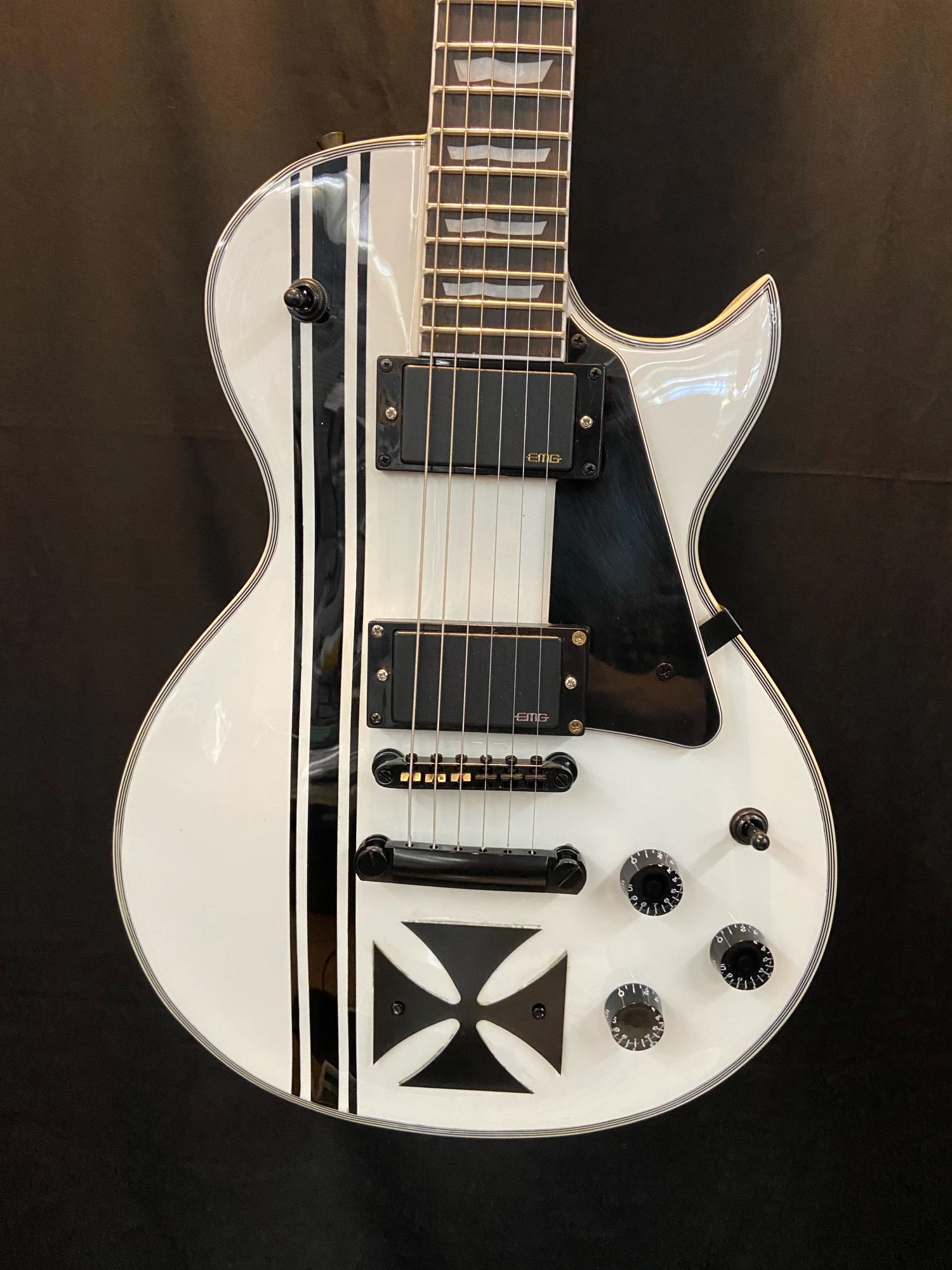 Made by hand at the ESP Custom Shop in Japan, the ESP Iron Cross is a Signature Series model of James Hetfield, the frontman of Metallica and one of the world’s most highly respected rhtyhm guitar players in any genre. The Iron Cross is based on James’ personal custom instrument design, and features set-neck construction of a mahogany body with maple cap, and a single-piece mahogany neck with ebony fingerboard and 22 extra-jumbo frets with an Iron Cross inlay at the 12th fret.Â