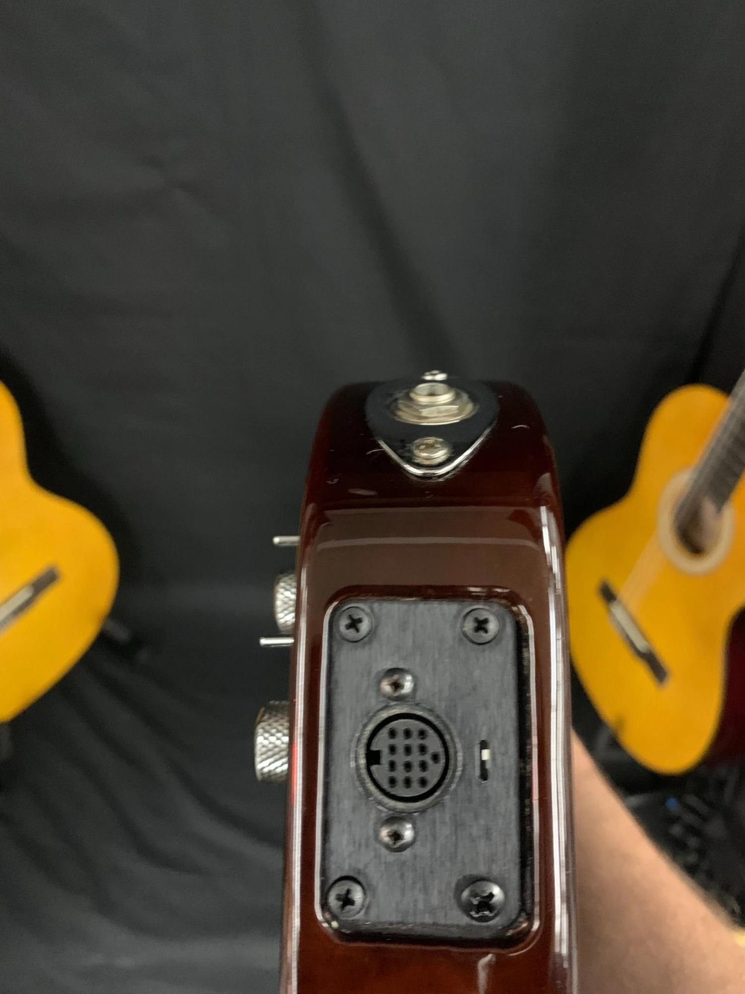 This Freeway did previously have an external synth installed we’re assuming to have played stereo on two different synth units. It has been removed and the screw holes are visible near the bridge.Â