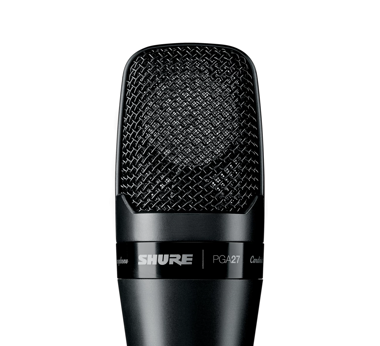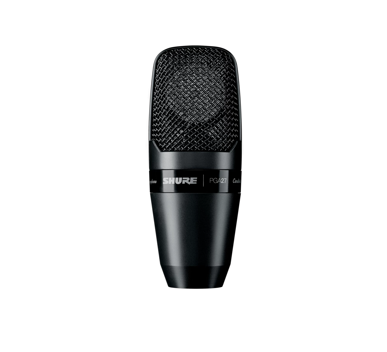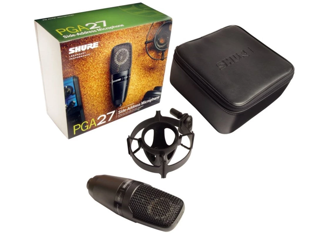 The PGA27 is a professional quality large diaphragm condenser microphone with an updated design featuring a black metallic finish and grille offering an unobtrusive visual presence. Legendary Shure quality construction ensures exceptional performance in rigorous environments.