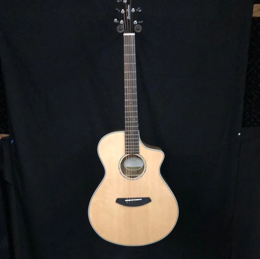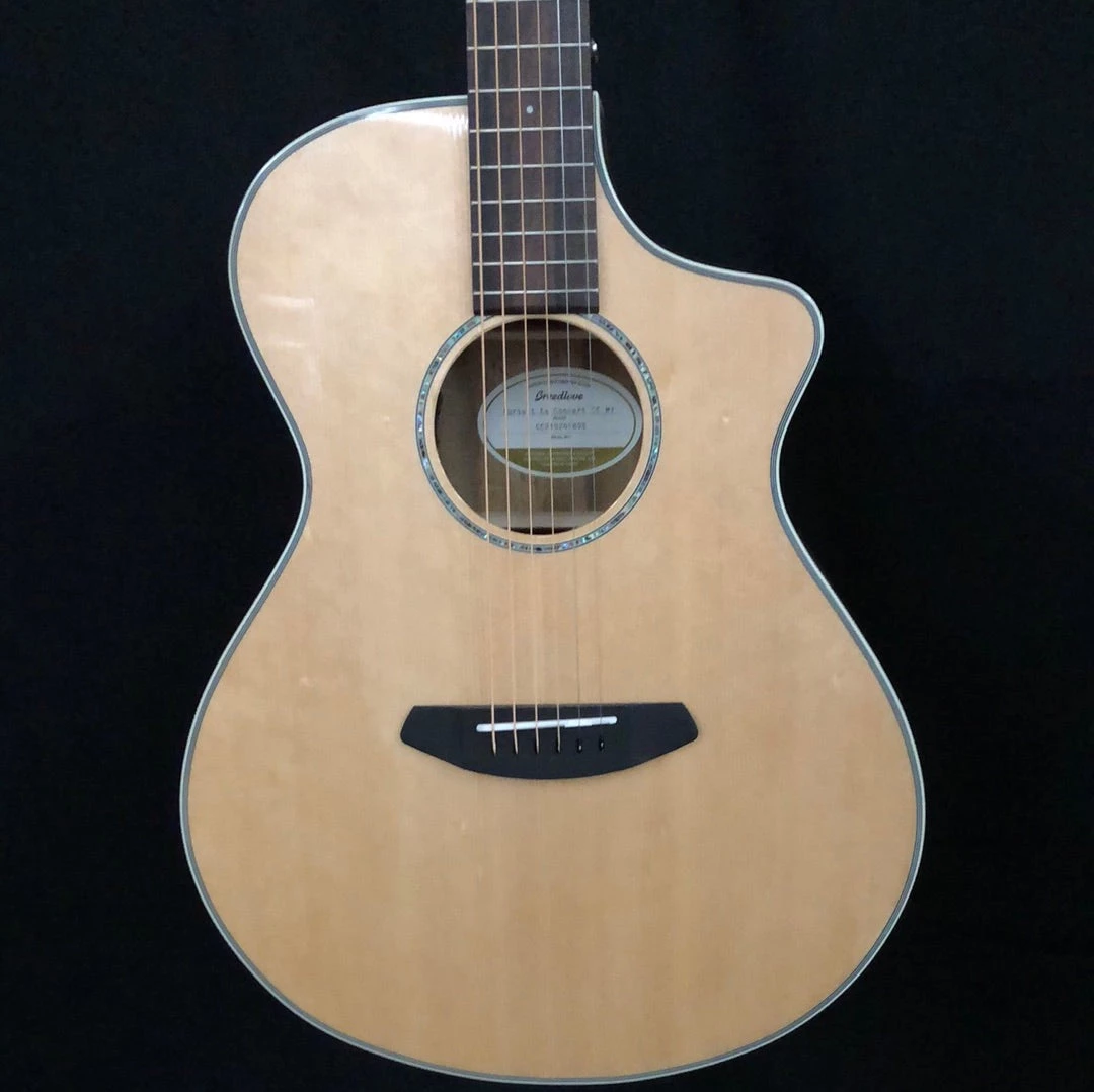 The best seller of all the Pursuit Exotics, the Pursuit Exotic Concert CE Sitka Spruce – Myrtlewood acoustic-electric guitar represents the amazing tonal balance of myrtlewood, which has a unique voice blending the best of East Indian rosewood and maple with distinct and clear bass, mids and highs. Include the powerful Sitka spruce top, and this guitar is alive with a distinct and attractive sound many touring musicians, studio engineers, and session players crave. With a versatile play style conducive to strumming and fingerstyle, it’s the perfect professional grade instrument for players looking for an all-in-one guitar that can stand out and carry the rhythm or be soft, sweet and nuanced when played fingerstyle. It comes standard with LR Baggs EAS electronics, which are highly reliable and sound fantastic. With the addition of an ebony fretboard, this cutaway Concert body allows for easy access to the entire fretboard. This is an ideal guitar for everyone from the touring musician to the beginner, and everyone in-between. You will sound better, play better and play more on a Breedlove Pursuit Exotic Series acoustic-electric guitar.