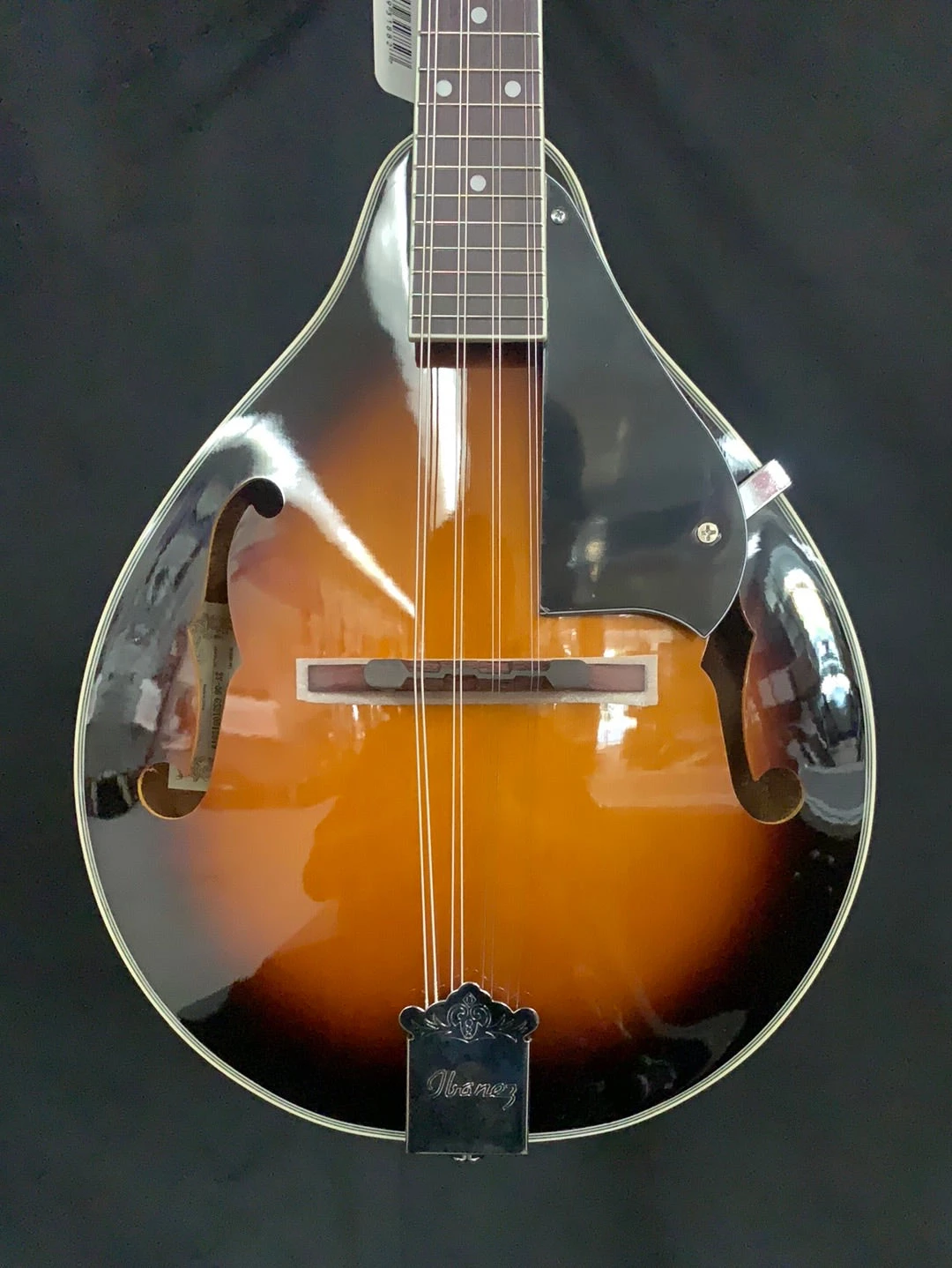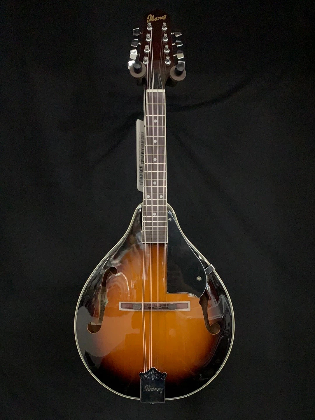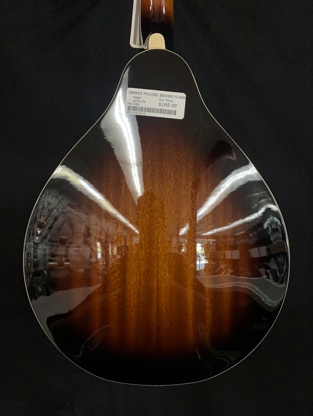 Styled in a brown sunburst high gloss finish, the Ibanez M510 is an A-style mandolin made with a spruce top, sapele back and sides, and a mahogany neck. Additional features include a purpleheart fingerboard, bridge, and saddle, as well as ivory body binding and a set of chrome tuners. The instrument is well suited for beginning and advanced players alike.