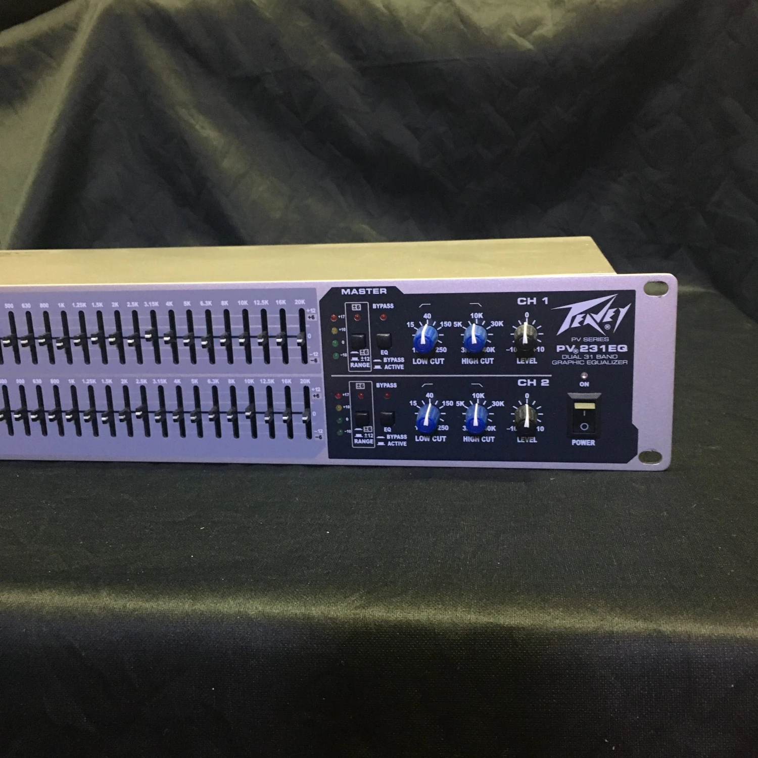 The PV 231EQ dual 31-band 2/3-octave graphic EQ features Peavey’s legendary low-noise, low-distortion design. The PV 231EQ has center-detented fader controls and offers selectable ±6 dB or ±12 dB gain over frequencies ranging from 20 Hz to 20 kHz and an LED display indicating level. Other features include variable-state low-cut and high-cut filters, XLR balanced inputs and outputs and bypass switches. PV 231EQ filters are set at ISO center frequencies within 3% accuracy.