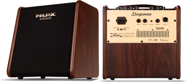 20 banks of well-selected Drum sequences, a 40 Loop Station, and unlimited Overdubs. ( Stageman App is currently available on the APP Store. Bluetooth control pedal is an optional accessory. ) The front control panel has 2 identical channels and both are optimized for microphones and acoustic guitar inputs respectively. The dual-input channels, on the NUX Stageman acoustic guitar amplifier, provide you with even more options for small gigs or studio recording. The Instrument Channel chorus is a tasty vintage chorus with a smooth vibration and reverb effect ( plate reverb with 2 styles ) which you can dial-in at low-level short-decay reverb effect between 1 – 5 and high-level short-decay reverb effect between 5 – 10 parameters. The Mic Channel chorus is also a vintage chorus–but with less vibration. Its reverb effect is one of the best built-in hall reverbs you can find. It has super clean reflections intended to let you feel the architecture of a well-designed concert hall. XLR DI output and Line output jack can be used as an analog audio-out for recording or sending to a monitor. To accentuate your customized sound, Send/Return FX Loop inputs interface with any of your essential effects gear. It’s never easy to find the ideal speakers for instrument amplifiers, especially for the acoustic instruments. After hundreds of times of trying speakers from different suppliers, we eventually decided to customize our own speakers to capture the exact sound we wanted. We triumphed by combining two refined speakers ( one: 1 inch tweeter and one: 6.5 inch woofer ) into Stageman’s cabinet. Equipped with this creative 2-way high-sensitivity speaker system, Stageman delivers incredible sound dynamics. To top it off, our cabinet design features a beveled-angle carefully calculated to provide optimal live sound monitoring. Stageman’s EQ and Effects offer a wide range of dynamic controls and, with the 2-way high-sensitivity speakers, you get on-the-fly studio quality sound, and the exact tone you need with the turn of a dial. Stageman’s chorus and reverb effects can be set individually on either of the 2 channels. Stageman has flexible outputs for both stage and recording applications, and is designed for your interface needs. 2-way high-sensitivity Speaker System Stageman APP & Bluetooth Control Pedal Stageman (AC-50) is designed to accurately reproduce the natural sound of your acoustic guitar and vocals.